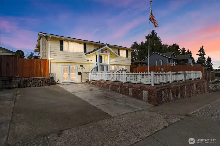 Beautifully maintained home just minutes from Pt Defiance & Ruston Waterfront. You have to visit this one to truly appreciate it. Enjoy the front deck to view the Sound. Expanded upper floor is open to a full great rm w/island kitchen, granite counters, walk-in pantry, & pass through to dining room, plus a mud room w/built-in storage. Primary suite is spacious w/room for furniture. Attached bath includes a tiled shower. Plenty of storage w/potential exercise room. Large 2nd bedroom features enormous walk in closet. Private fenced backyard w/covered deck. Home is ready w/new furnace, water heater, A/C, and sprinkler system. Pre-inspection completed & 1yr home warranty included. The alley accessed garage is insulated & heated. Make it yours!