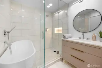 Newly upgraded property on quiet cul-de-sac in desirable View Ridge neighborhood, this daylight rambler offers mid-cent modern sophistication, quiet surroundings, peekaboo view with large lot and plenty of space to park your toys. Perfect for entertaining, this home will wow your guests with modern back deck, private courtyard, & stunning kitchen. Primary on main with new luxury walk-in shower & enormous walk-in closet space. Downstairs, windows bring west facing daylight with a beautiful wet bar. 3 bedroom with bonus rm offers plenty of space. 2car garage and large driveway plus space for parking or rec vehicles. This home has been cherished for many years and recently upgraded to host YOUR memories. 5k dream closet credit offered