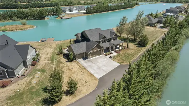 Enjoy exclusive access to your private lake, with access to a 2nd tournament waterski lake. This beautiful home includes a den and a spacious bonus room and includes a full bathroom on the main. Interior features include LVP flooring,11-foot ceilings, alder doors and cabinetry, quartz countertops, & SS appliances. The utility room offers a utility sink, folding counter, and ample storage.The vaulted primary suite includes a W/I closet with custom organizers. Additional amenities include a 3-car garage with 400-amp service, heat pump, hot tub, irrigation, fire pit, and covered patio with built-in heaters. Nestled next to 100 acres of timberland with direct access to trails. Gated Community. This isn't just a home, it's a lifestyle!