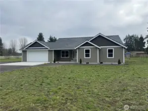 Brand-new home on a level 1.25-acre lot in the heart of Grand Mound—just minutes from I-5! Built by a reputable local builder, this thoughtfully designed home offers an open-concept layout with a beautiful kitchen featuring white shaker cabinets, granite counters, and a large center island—perfect for entertaining. The spacious primary suite includes a custom walk-in closet, soaking tub, and walk-in shower. Step outside to a large back patio, paved driveway, and extended concrete—ideal for a shop, garden, or outdoor living. A rare opportunity for space, comfort, and location!