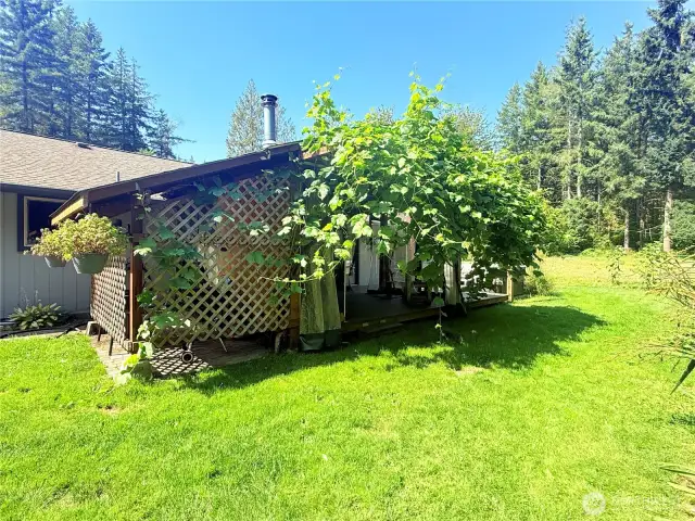 Nestled on 4.59 beautifully manicured acres, this well-maintained 2-bedroom, 2-bath home offers comfort, privacy, and serene country living. The property features mature landscaping, open green spaces, and plenty of room to roam. The home includes a spacious kitchen with all appliances, well-sized bedrooms, and a newly remodeled master shower. Enjoy year-round comfort with a high-efficiency heat pump for both heating and cooling. Outdoor living is a highlight with a covered BBQ area, screened/vinyl-enclosed porch on low-maintenance Trek decking (TV included), and a relaxing hot tub. A 250-gallon propane tank (owner-owned) adds value and flexibility. Plenty of room for gardening, animals, or future expansion! Move-in ready!