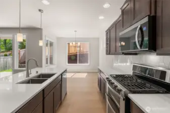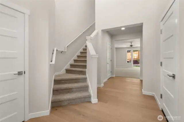 $10,000 Builder Bonus Move-In-READY! The Hazel plan, in the Rob Rice Homes community of Bradbury, offers 5 bedrooms, one being a junior suite on the main floor & 3.5 baths. Enjoy contemporary details like, hardwood flooring, quartz counters & charcoal-stained maple cabinets throughout w/full extension guides & soft closure drawers plus stainless-steel appliances. Primary 5-piece bathroom with tile flooring. New energy-efficient features include high-efficiency variable stage heat pump providing both heat & air-conditioning, solar panels & an electric hybrid water heater. Landscaped front and back with backyard fully fenced. Home backs up to open space for added privacy!