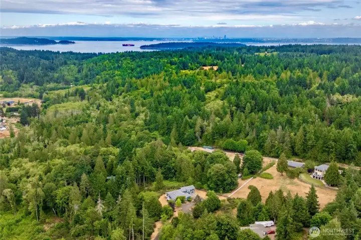 Perfect Olalla area, custom built rambler, 2.5 acres, private and quiet, long paved driveway! 500k in renovations! Kitchen with oversized island, brand new appliances, natural stone counter and skylight. Primary suite with huge walk in closet, 5 piece bath, dual shower heads, and separate water closet. Mudroom off the garage is very practical. All that on one level is hard to find! Above the garage is a 900 sq ft bonus room with kitchenette, half bath and balcony. Great opportunity for MIL suite, rental or enjoy as the ultimate rec room! Brand new heat pump and water heater. 10 minutes to Seattle fast ferry. Neighborhood has private access to Banner Forest. Peakaboo view of Olympic Mountains. This unique setting cannot be beat!