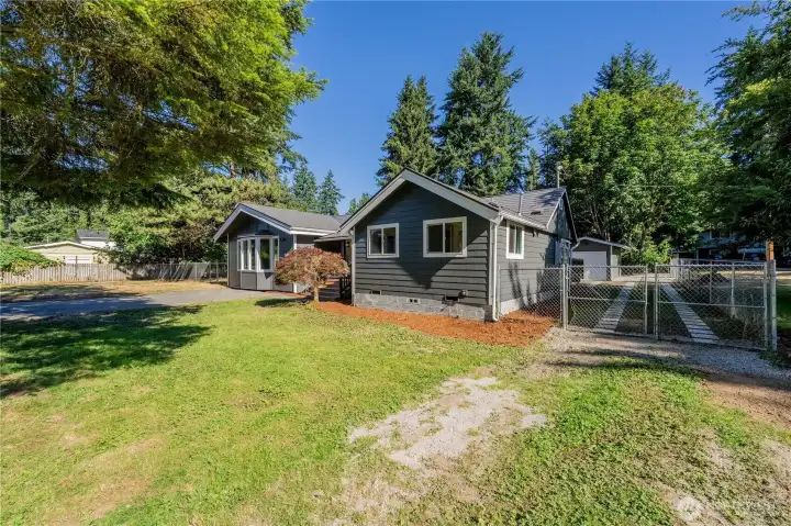 Need some space? This 1 level home has been beautifully updated & is located on a .42 acre lot w/ over 2100 sq ft of living space. Each bedroom has new carpets & paint. The bathrooms have new vanities, LVP flooring, ceramic sinks & LED lighting. The primary bedroom has a walk-in closet, vaulted ceilings, a slider to a covered deck. The updated kitchen has a new workstation sink, LED recessed lighting, new quartz counters, new cabinets & SS Appliances. Through the kitchen is the laundry, 3/4 bath & an office/bedroom space. The fully fenced backyard has a HUGE 546 sq ft deck, new 200 sq ft garage & large gate w/ driveway access. New insulation & vapor barrier. Tankless gas hot water, natural gas furnace, gas range, pellet stove, metal roof.