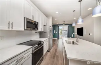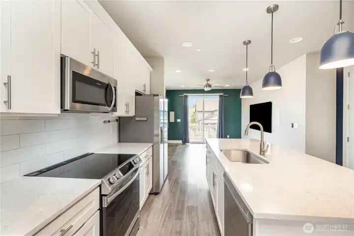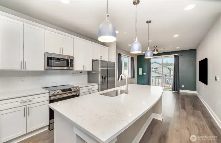 Welcome to this stylish 3-bedroom, 2.5-bath home in the desirable Tehaleh community, thoughtfully crafted by Azure NW. Feeling like new, it boasts a smart layout, quartz countertops, and large windows that flood the home with light. Enjoy built-in shelving throughout, including a 3-desk office setup, a home theater with in-wall speakers, and a covered back patio with a built-in playhouse/storage space. The fully fenced yard has locking gates, and the extra-wide driveway provides a second parking spot. Nestled in a vibrant community with scenic trails and parks—and located in the sought-after Sumner School District. This home offers the perfect blend of comfort, charm, and modern convenience. Don’t miss your chance at the Tehaleh lifestyle!