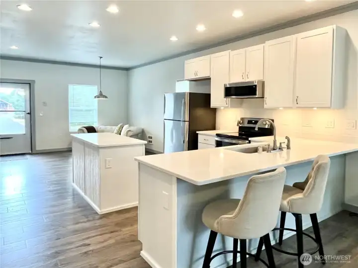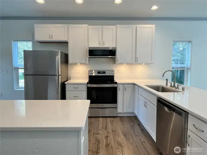 Well-maintained 2-bedroom, 2-bath home offering 1,092 sq ft of living space. This thoughtfully designed residence was built "on site" in 2021 and features an open-concept layout connecting the living, dining, and kitchen areas, complete with eloquent quartz countertops, stainless steel appliances, and a propane fireplace. The primary bedroom includes a walk-in closet and private bath. A dedicated laundry/mudroom adds functionality after trips to the beach. Enjoy covered front and back porches, low-maintenance landscaping, ample off-street parking, and a spacious storage shed. Located close to beach access, shopping, and the amenities of Oyhut Bay Seaside Village. Ideal for full-time occupancy or a coastal getaway.