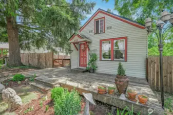 Darling 2-bedroom, 1-bath home with timeless appeal in the Mountain View Community. Home has original hardwood floors throughout, cozy living room w/ woodburning stove, and kitchen w/ beautiful cabinetry & adjacent dining area. Upstairs is possible bonus room, perfect as an office, guest space, or loft retreat. Lots of outdoor spaces, including a big front deck ideal for morning coffee and a covered back patio perfect for entertaining. Backyard is fully fenced w/ large shade tree, garden area & two tool shed, plus easy access through a mudroom-style laundry room after time in the yard. Minutes from shopping, dining, schools, parks, and hiking trails, this gem blends comfort, convenience, and character in a desirable community setting.