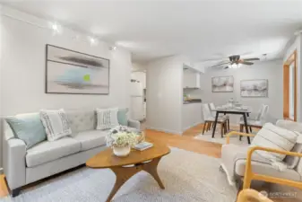 Discover this top-floor corner unit, ideally set in the last row of the community for exceptional privacy and peaceful surroundings. The expansive living room with a cozy fireplace is perfect for relaxing or entertaining. A full-size washer and dryer plus abundant storage in the utility room and balcony deck add convenience. The spacious master bedroom offers a large wardrobe, while the private balcony provides daily greenery views. Recent upgrades include NEW roofing, siding, deck, and windows. Located just minutes from the freeway, Park & Ride, and Totem Lake shopping, this home is in a serene community with ample guest parking. With NO rental cap, it’s a rare find for both homeowners and savvy investors.
