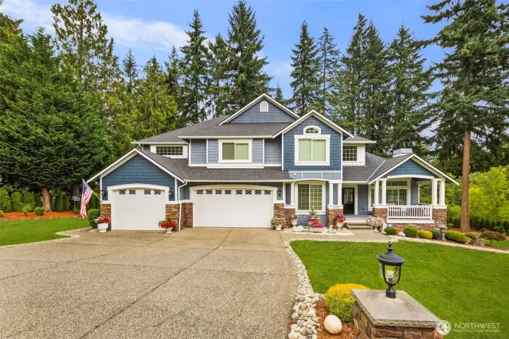 Stunningly renovated Craftsman retreat on a park-like acre in sought-after Aspen, backing to one of four private community parks, surrounded by trails and custom homes. Ideal for multi-generational living, the fully finished lower level offers a stylish kitchen, updated bath, guest suite, and private entrance. The main floor is perfect for entertaining w/ formal living, dining, office, a chef’s kitchen w/ quartz waterfall countertops, stainless appliances, abundant light, vaulted ceilings, w/ an open layout to the family room and expansive deck. Upstairs features four bedrooms + bonus, including a serene primary suite with sitting area, spa-like marble bath, and mountain views. New systems, A/C, and lush landscaping create this masterpiece.