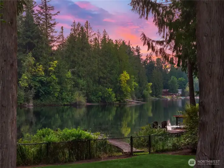 A brilliant life starts here w/ elevated style, 56 feet of waterfront on a shy acre on scenic Beaver Lake. Cohesive indoor/outdoor living provides the ultimate PNW experience. All-weather, high-end composite deck, covered patio & sprawling lawn lead to a private dock w/ floating party barge. Lakeside boathouse for paddleboards, kayaks & water toys. Timeless finishes - honed marble bathroom counters, custom cabinets, heated floor. Epicurean kitchen boasts SS appliances, 6-burner Thermador range w/ custom hood, breakfast nook & gorgeous lake views. Desirable main-level guest suite; expansive lower level w/ a lrg rec room, office, remodeled 3/4 bathroom + potential 5th bdrm. Pre-inspected and 100% turn-key. Min to I-90, schools & amenities.