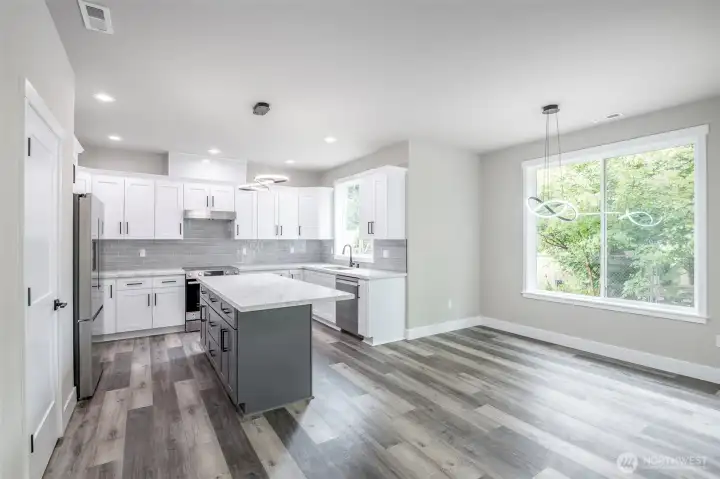 UP TO $16K BUILDER CREDIT! Overbuilt by design—CUSTOM NEW Construction! This beautiful 5-bedroom, 3-bath home is fully landscaped with irrigation & ideally located just minutes from Hwy 512. Oversized 4-car finished garage features 8-ft insulated steel-backed doors. Inside, you’ll find 9-ft ceilings & luxury vinyl plank flooring throughout the main floor. The open-concept kitchen offers custom soft-close cabinetry, upgraded quartz counters & a 12-ft double slider that opens to a covered patio—perfect for indoor/outdoor living. The vaulted primary suite showcases a 5-piece bath & expansive walk-in closet. Tile-surround fireplace, 40-year roof, Hardie siding, efficient heat pump, full appliance package, RV parking & no CC&Rs—move-in ready!