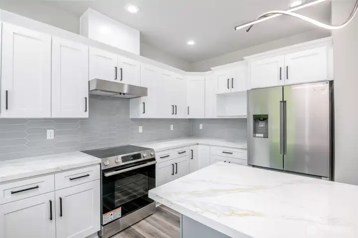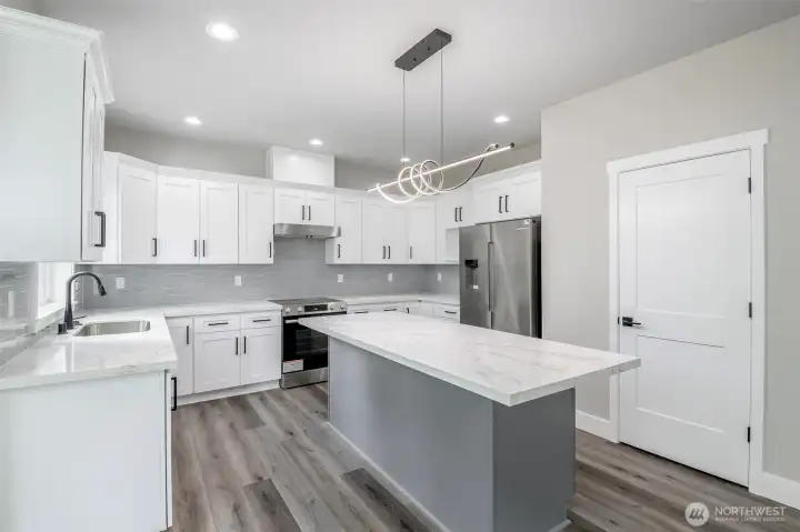 UP TO $16K BUILDER CREDIT! Overbuilt by design—CUSTOM NEW Construction! This impressive 5-bedroom, 3-bath home rests on an estate lot with full landscaping & irrigation, just minutes from Hwy 512. The 4-car finished garage features 8-ft insulated steel-backed doors. Step inside to 9-ft ceilings & luxury vinyl plank flooring throughout the main floor. Open kitchen is appointed with custom soft-close cabinetry & upgraded quartz counters, flowing into the spacious dining & living areas. The vaulted primary suite boasts a 5-piece bath & a walk-in closet large enough to impress. Additional highlights include a tile-surround fireplace, 40-year roof, Hardie siding, efficient heat pump, full appliance package, RV parking & no CC&Rs—move-in ready!