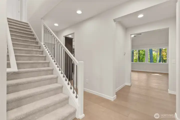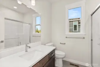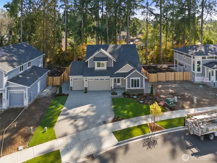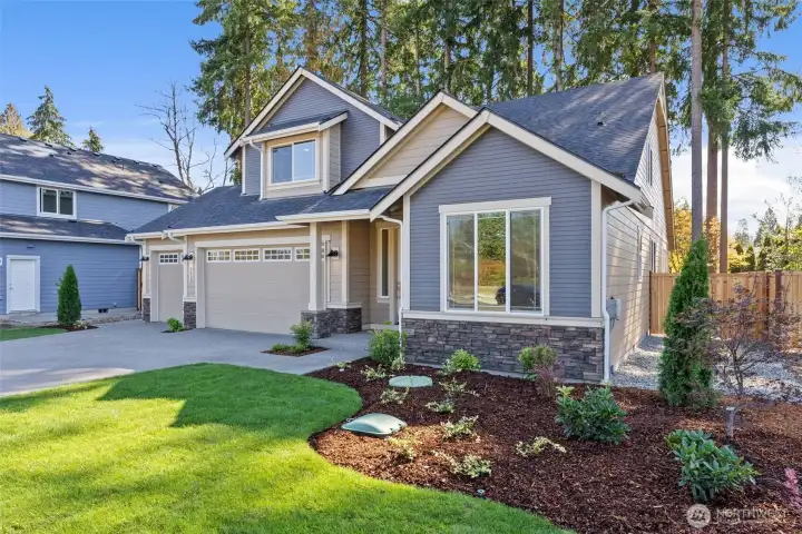 Introducing the Madrone plan in Trosper Woods—Rob Rice Homes’ newest Tumwater community where timeless design meets everyday comfort. This thoughtfully designed home on a ¼-acre lot offers 2,745 sq. ft. of flexible living with a main floor primary suite plus an additional bedroom and nearby ¾ bath. The open kitchen is ideal for gatherings, featuring rich “Charcoal” stained Maple cabinets, quartz counters with full tile backsplash, and upgraded KitchenAid appliances. Upstairs, a loft, full bath, bedroom, and den/flex room offer endless possibilities. Energy-efficient features include solar panels, cold-climate heat pump, triple pane windows & recirculating hot water. Located close to I-5, parks, schools—and Costco just minutes away!