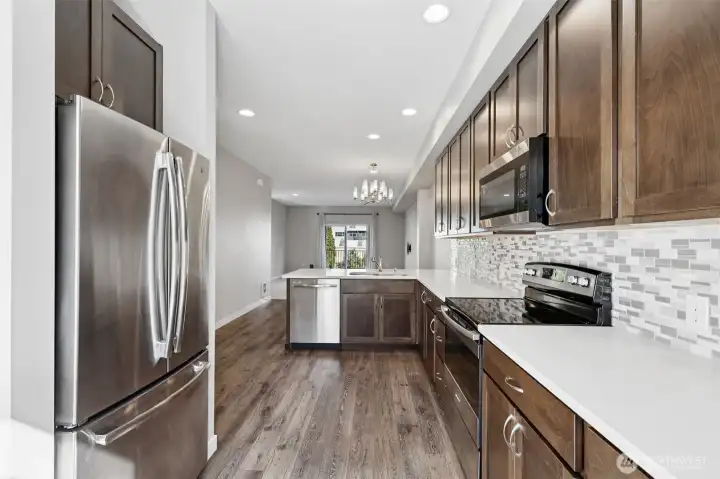 Rosedale Townhomes is a newer, charming and private enclave of homes in a great Lynnwood location. This spacious 1,690 sq ft end unit is move-in ready and features 2 beds, 2.5 baths, and lower level bonus room w/closet (could be 3rd bedroom/office/workout space). You will love the modern, open floor plan bathed in natural light and the generous entertaining spaces. The kitchen features quartz counters, SS appliances, and plenty of counter space. Step out of the great room to a sunny deck overlooking a fenced back yard with patio space and garden/planter area. Oversized single car garage with driveway parking is a bonus! Close to the new Lynnwood rail station, Alderwood mall and easy access to I5 or 405 through Bothell. Don’t miss this one!
