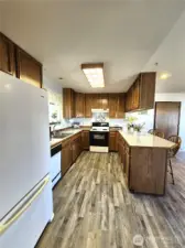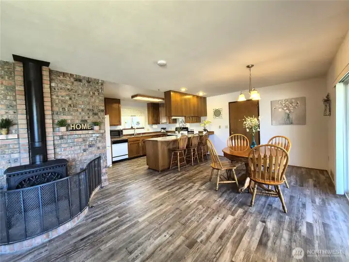 Wonderful 3 bed 2 bath rambler on big 10,019 sq ft lot! New luxury vinyl laminate flooring in kitchen, dining room, living room, entry & bathrooms. New carpet in all three bedrooms.Seller is giving $5000 credit towards appliances or closing costs! Gas stove in living room. Huge covered deck. Great home for entertaining with plenty of parking. Primary suite W/ full bath en suite & large walk in closet. Huge fenced back yard with outbuilding for storage. Big one car garage with storage. Gas hot water heater. The yard is beautifully landscaped with waterfall water feature in the back yard. Potiential for additional parking in front & back for RV. Great location close to schools,shopping, restaurants,clinics & more! Must See!