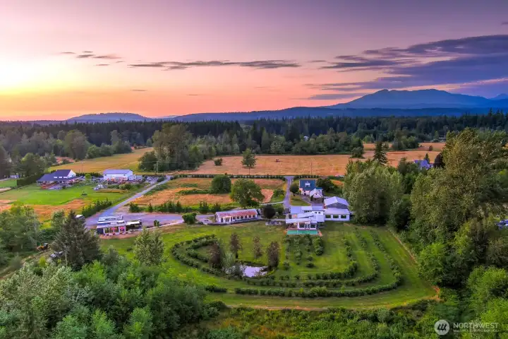 14+acre Monroe property is a masterclass in design, and creativity. Level & flanked by mountain views, this gorgeous acreage includes a quintessential three story farmhouse offering 4 bedrooms, 2 baths, living, dining and family room areas plus a stunning new great room centered by a large Kitchen with Viking range. Covered front porch with mountain views. Across the acreage you'll find fruit trees, blueberries in season and lavender. Two gated entries, 4- bay shop with level 2 car charger, sport courts, firepit and multiple outbuildings. Just 20 minutes to downtown Monroe with all the area amenities.