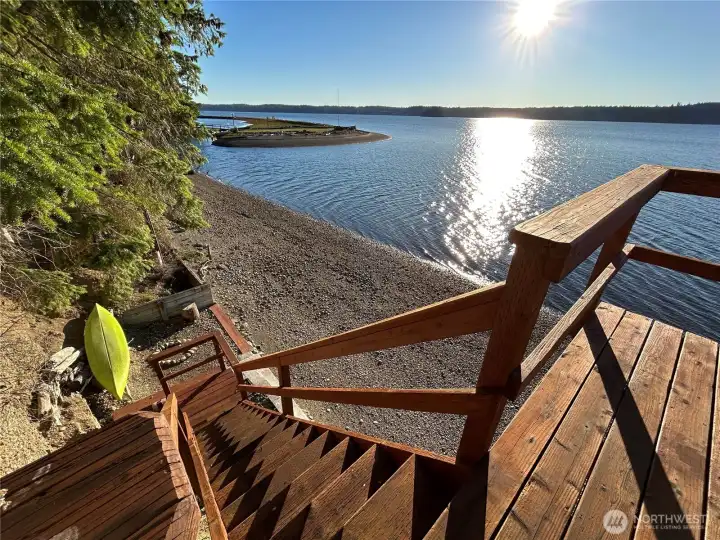 Spectacular west-facing 70' medium-bank waterfront with tidelands—soak in breathtaking sunsets, panoramic views & stunning Olympic Mountain vistas. This fully updated home is turnkey & designed for coastal living, with an open-concept main floor, vaulted ceilings & a stylish new kitchen that flows seamlessly into the light-filled living/dining areas. Slider doors open to a spacious 500 sq.ft. deck, perfect for entertaining. 2 bedrooms & full bath complete the main level. Downstairs features a large family room, ¾ bath & laundry. Stairs to the beach are in excellent condition & the covered gazebo (12' across) plus large patio area let you enjoy the outdoors year-round. Quality craftsmanship throughout & everything is NEW..just relax & enjoy!