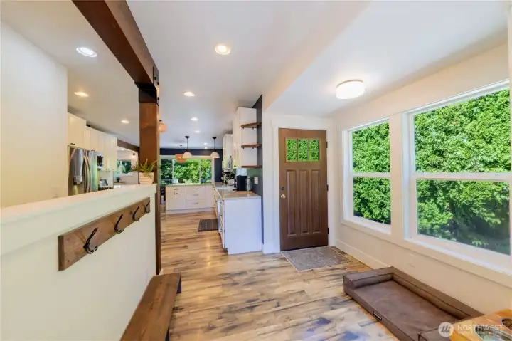 Discover timeless Pacific Northwest living in this beautifully updated 1918 farmhouse on nearly an acre. Blending vintage charm with modern elegance, this home features new flooring, a fully renovated kitchen and baths, quartz countertops, and a walk-in closet off the primary suite. Natural light fills every room, creating a warm and inviting atmosphere. Step outside to a large entertaining deck with peekaboo Mt. Baker views, mature fruit trees, garden berries, chicken coop, RV parking, detached garage/shop, and a fully fenced backyard. Just minutes to downtown Bellingham and Phillips 66 Soccer Park, this property offers the perfect balance of country serenity and city convenience.