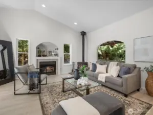 PRICE IMPROVEMENT! Tucked away in a serene setting surrounded by mature trees, this tastefully updated 4-bedroom, 2.5-bath home blends comfort, style, and privacy. Over $55K in upgrades include a brand-new roof, flooring, fresh interior/exterior paint, updated light and plumbing fixtures, front door, pantry door, microwave, landscaping, and more. Natural light floods the home, highlighting refreshed interiors. The spacious primary suite includes a beautifully updated ensuite, while two other upstairs bedrooms enjoy peaceful Lake Ketchum views. All bathrooms feature modern finishes. The large, private backyard is ideal for gardening, play, or relaxing in nature. A 16x16 outbuilding offers endless potential—studio, gym, workshop, or office!