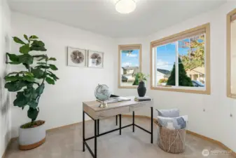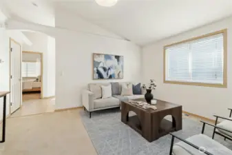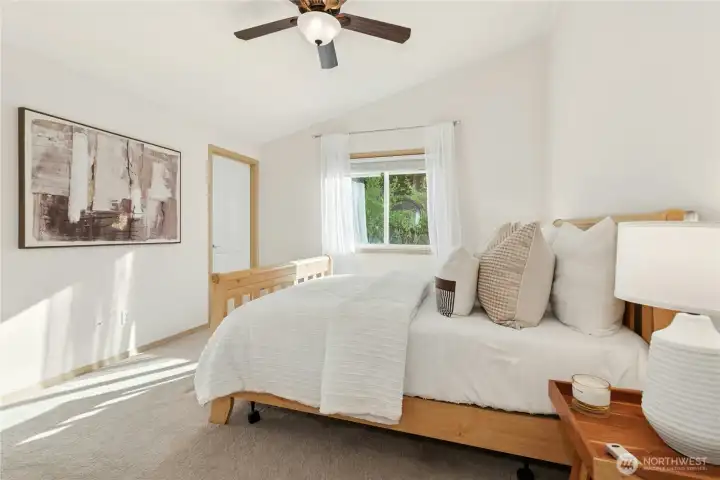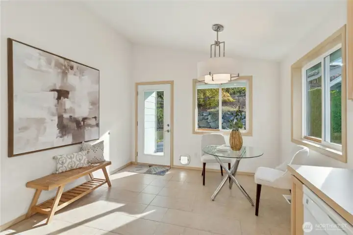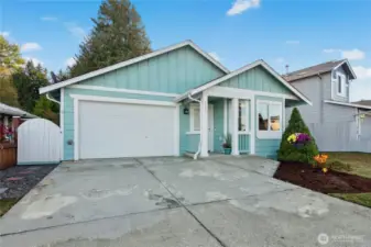 Charming 1-bedroom, 1.5-bath home located in a welcoming 55+ community in the Sunnyside neighborhood of Marysville with low HOA dues. The well-designed kitchen features a cozy dining area and opens directly to deck, perfect for enjoying your morning coffee or evening unwind. High ceilings and an open floor plan in the spacious living room create a bright, airy atmosphere. The bonus room offers flexible space for a home office, or hobby area. Large primary suite includes a walk-in closet and full en-suite bath with Jacuzzi tub. Full-size washer and dryer are conveniently located in the laundry room, which leads to the one-car garage. The home also includes a fully fenced yard with gate. A well-maintained home in a quiet, friendly community!