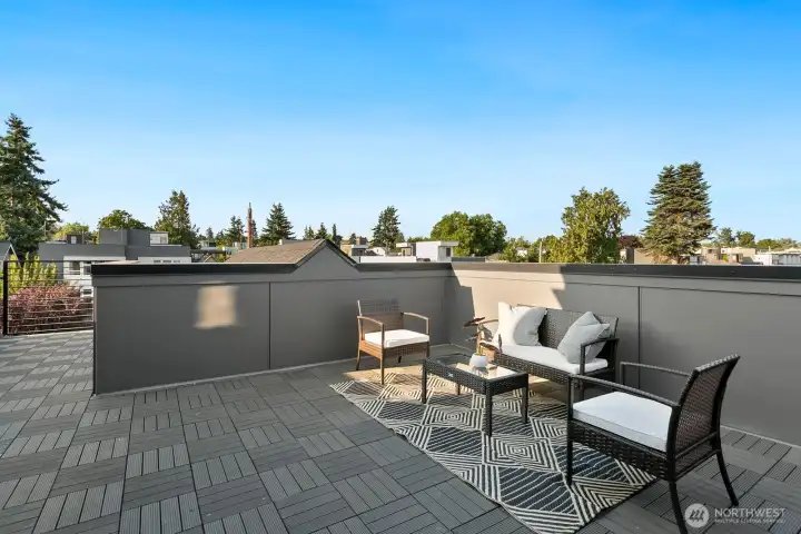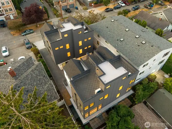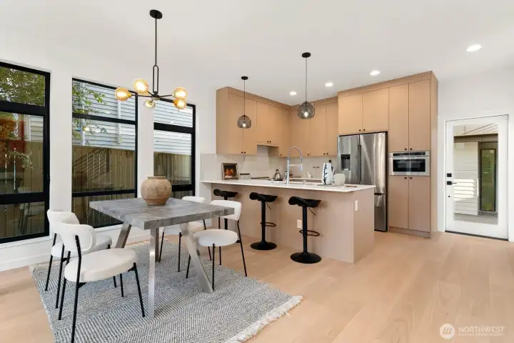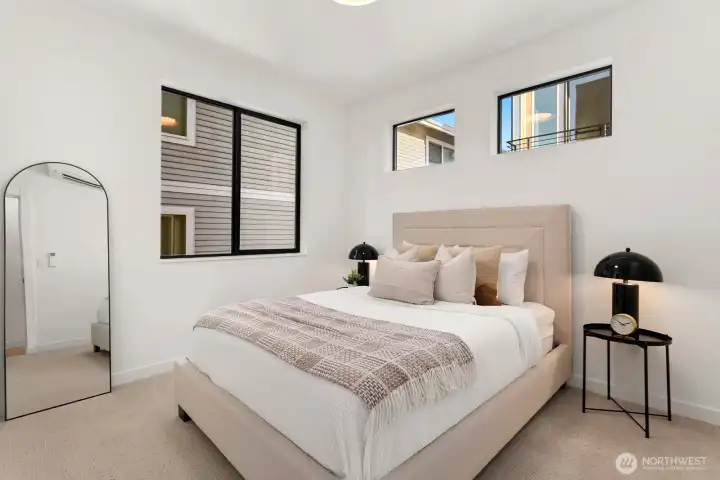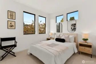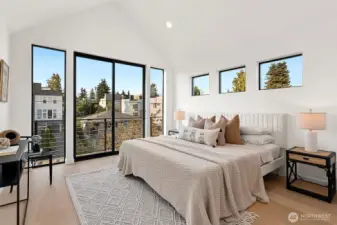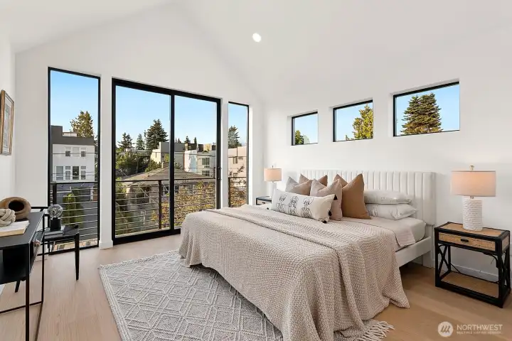 2.99% INTEREST RATE OFFER! Premier builder Legendary Homes has delivered exceptional quality, thoughtful design, and elevated finishes in this rare 4-bedroom home. Featuring energy-efficient systems, recessed minisplit, fully fenced patio area and Built Green Certification. Light-filled interiors with soaring ceilings and oversized windows create an airy, open atmosphere. The kitchen features a large peninsula and high-end appliance package, ideal for entertaining. Retreat to your expansive top-floor suite with vaulted ceilings, private balcony, and walk-in closet. Contemporary hardware and lighting, EV-ready parking pad, and rooftop deck add to the home's modern appeal. Located in the heart of vibrant, walkable Ballard near Market Street.