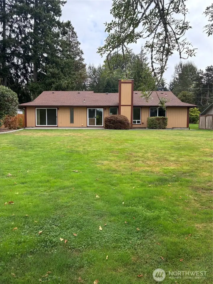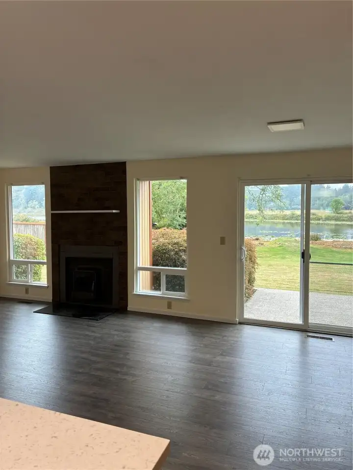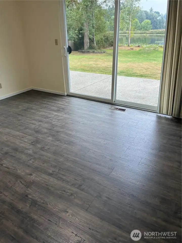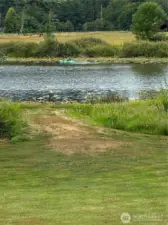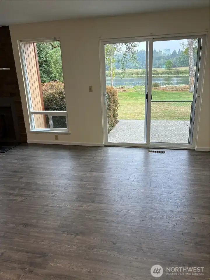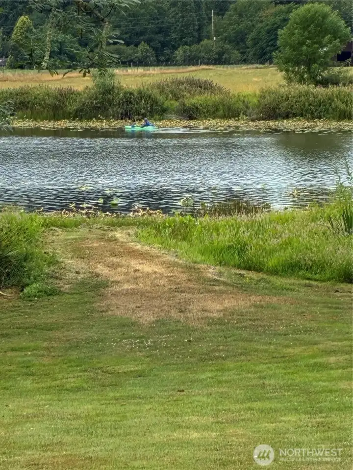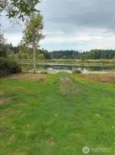 Waterfront rambler in ideal setting, close to town yet feels like vacation-land. Chambers Lake in back yard with 77 feet of no-bank waterfront, and Chehalis Western Bike & Walking Trail adjoins the full length of neighborhood with access points at North and South. Three bedroom, 1.5 bath that lives like 2 bath due to ingenious Jack and Jill style. Primary suite private bath shares the tub/shower with hall bath. Easy care vinyl plank flooring, updated kitchen and baths. Grand picture windows and sliders offer views of lake, nature and pastureland that can't be beat. Spacious patio for outdoor entertaining. Fruit trees, level property great for gardens, play or pets. Dead end street tucked behind Panorama for peace and quiet and no traffic.