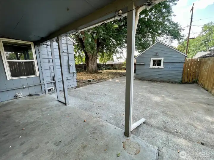 Spacious 4-bedroom, 1-bath home with multiple living spaces offering flexibility and comfort. Walk out the separate dining room and enjoy the outdoors with a covered patio and a fully fenced backyard—perfect for pets, play, gardening, or entertaining. Alley access leads to a detached garage and additional parking, adding convenience and plenty of storage space. A great home with room to grow!