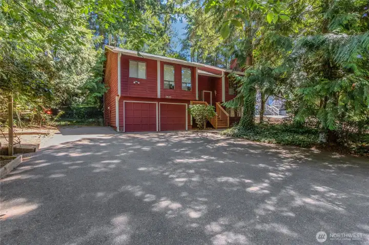 This beautifully updated home features a fully remodeled kitchen with custom cabinets, pull-out shelves, granite counters, double wall ovens, and a large island with a cooktop and seating. French doors lead to a composite deck with a built-in bench, perfect for entertaining. The upper floor offers a spacious primary suite with a walk-in closet and a luxe bath featuring a jetted tub, dual-head shower, double vanity, and heated floors. Additional two bedrooms & additional 1.75 baths. The lower level boasts a bonus room with a marble wet bar, built-in shelving, a laundry room, and a ¾ bath. Nestled on a private, tree-filled 0.28-acre lot with a garage offering storage and workspace, this home blends comfort, style, and functionality.