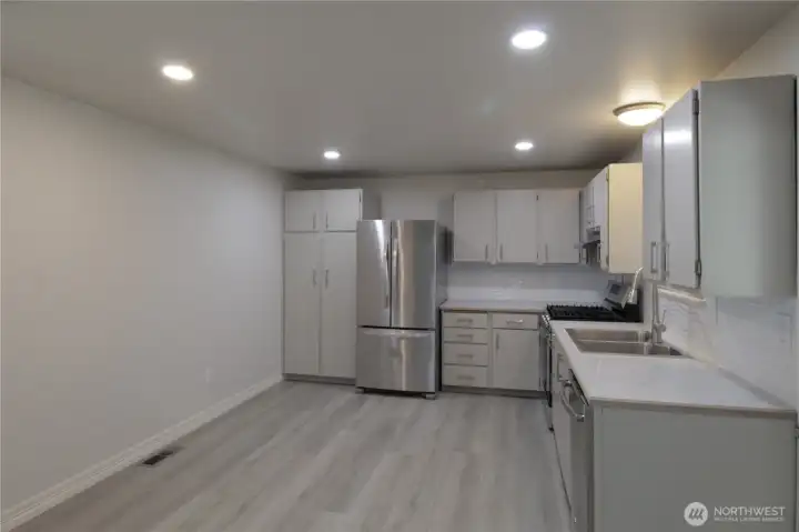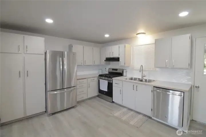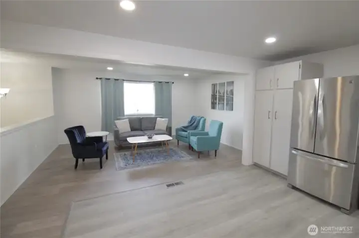 Updated home on large corner lot with no HOA featuring brand new exterior paint, interior paint, and flooring. Upstairs you'll find the living room, kitchen, dining room or office, one full bathroom and two bedrooms. Downstairs there are two bedrooms, one half bathroom, a utility room, a large bonus/rec room that can be converted back into a garage or be a 5th bedroom. A brand new 30-year roof was professionally installed less than a year ago. All appliances stay with the home including the washer & dryer. Off the back of the house there is an oversized deck that is fully covered and below that a large patio. The backyard is fully fenced with room to park an RV or extra vehicles behind the vehicle gate. Close to schools, shopping and JBLM.
