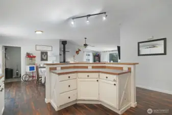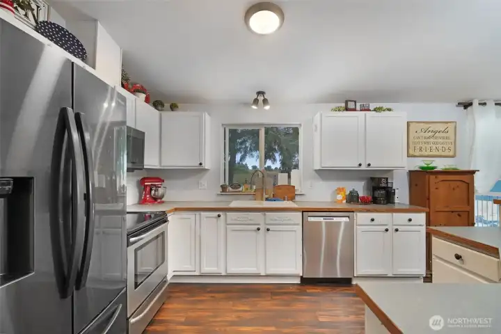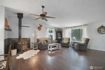 Discover the perfect blend of privacy and convenience on this beautiful property just shy of 2 acres, mature bushes, fruit trees, outdoor buildings ready for those goats, chicken or small animal, gate at entry, paved walkway from house to woodshed with wood ready for those chilly nights. Nestled at the end of a quiet dead-end road, this setting offers open-concept living with natural light, three spacious bedrooms, cozy wood stove for the chilly nights, large kitchen & living area, and both a patio and deck ideal for relaxing or entertaining. The partially fenced yard, massive shop 62x48 with an RV door this is a rare find for hobbyists, RV owners, or small business needs.