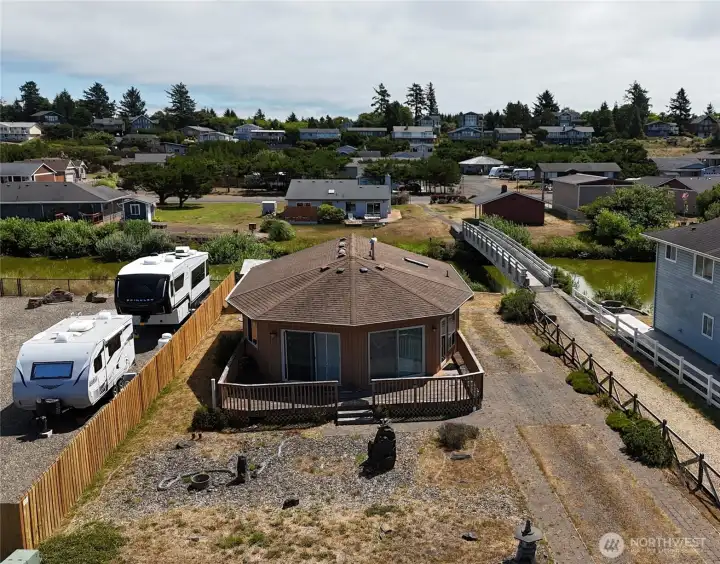 Tranquil Seabreeze Lake Home with 63 feet of waterfront awaits its new Owners! Ocean path just steps away giving you the best of both worlds! Escape to this Unique Octagon 2-bedroom, 2-bath cabin, fully furnished and ready for your summer adventures! Comfortable interior ready for move-in enjoyment. Private backyard deckâclose enough to cast a line and fish, launch a kayak or canoe into the largest fresh water lake in Surfside. Golfing nearby with stores and restaurants just minutes away. Whether you're lounging in the sun or enjoying backyard BBQs, this cabin is the perfect spot for creating unforgettable summer memories.