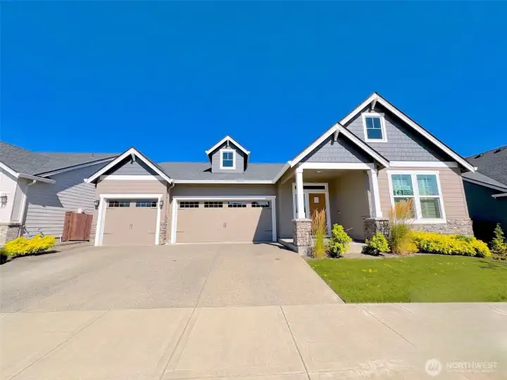 Welcome to Seven Wells Estates! This immaculate 3-bed, 2-bath rambler boasts an open floor plan with abundant natural light from oversized windows. The chef’s kitchen features a large island, bar seating, and dining area, flowing into a spacious great room with built-ins and a cozy gas fireplace. Relax in the primary suite with a 5-piece bath, soaking tub, and dual shower heads. A 3-car garage offers room for hobbies, plus an oversized utility room. Outdoors, enjoy a terraced, fenced backyard with deck, patio, mature landscaping, and room for your personal touch. Well-appointed neighborhood shows pride of ownership! Just minutes from new In & Out Burger, Costco, and Ridgefield amenities!