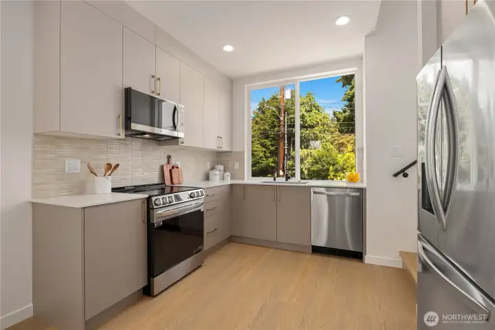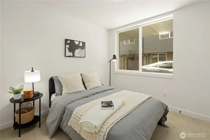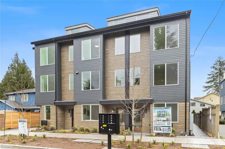 2.99% INTEREST RATE W/PREFERRED LENDER (qualifications apply)+ $5,000 CREDIT TO FURNITURE OR CLOSING COSTS! Experience refined living in this stunning new construction home at Roslyn with RARE EV-READY PARKING. This 4-bedroom end-unit has room for everyone—with bright, open living, expansive windows & luxe finishes made for entertaining. Chefs kitchen features custom cabinetry, SS appliances & quartz countertops. Upstairs, top-floor primary suite boasts a spa-inspired bath w/2nd bedroom & full bath on the same level. 2 bedrooms, conveniently located downstairs are perfect for guests or home office. Enjoy sunset views on the rooftop deck! Peacefully set in Haller Lake, with easy I-5 access to DT, Northgate Station, restaurants, shops & more.