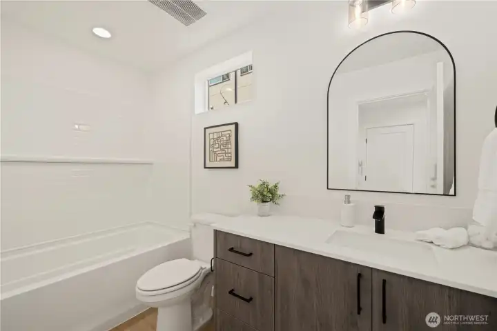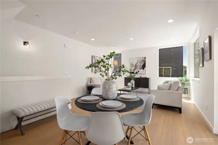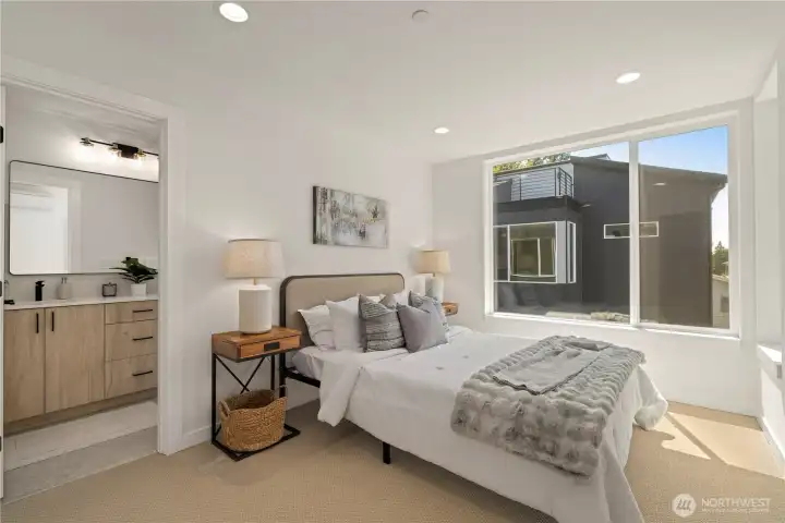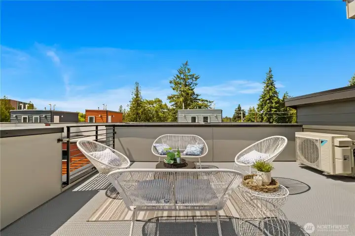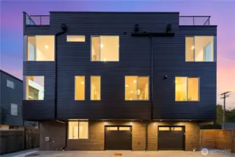 Move-in ready! Discover vibrant North Seattle living at Roslyn in Haller Lake! This stunning new construction home offers 4 bedrooms of modern comfort with sunlit open living, designer finishes, & an entertainer’s kitchen featuring custom cabinetry, quartz countertops & stainless appliances. The top-floor primary suite impresses with a spa-inspired bath, while two lower-level bedrooms provide flexibility for guests, office, or a gym. Take in sunset views from your private rooftop deck! Perfectly positioned near Light Rail, I-5, local dining, coffee, & shops this prime location delivers unbeatable convenience and growth potential—ideal for living, renting or both. EV-READY PARKING. 1-year rate buydown with preferred lender (*terms apply).