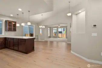 $10,000 Builder Bonus Move-In-READY! The Redwood, a luxury rambler in Bradbury by Rob Rice Homes! This one-story home, 1942 SF, features 2 bedrooms+ den or 3rd bedroom & 2 baths. Contemporary details including hardwood flooring in entry, kitchen & dining with quartz countertops throughout. Sable-stained Maple cabinets w/full extension guides & soft closure drawers. Modern kitchen w/SS appliances + fully landscaped front & back w/privacy fencing. The primary bathroom features a 5-piece bath w/tile floors. New energy-efficient features include a heat pump for heat and air conditioning, solar panels, & heat pump water heater too! Two-car garage w/door opener. Photos virtually staged or of a previously built home w/similar finish.