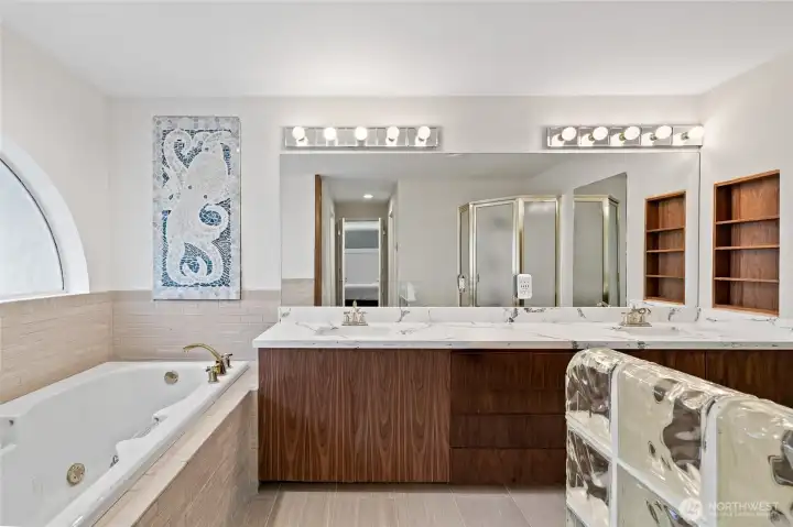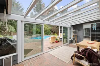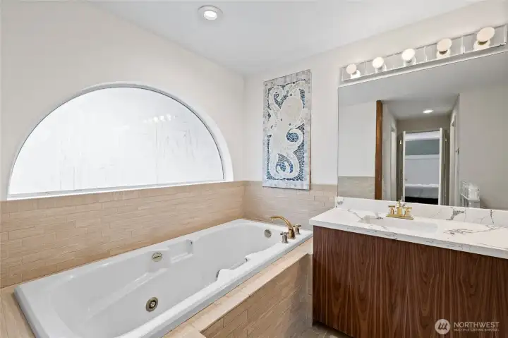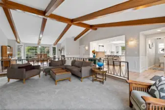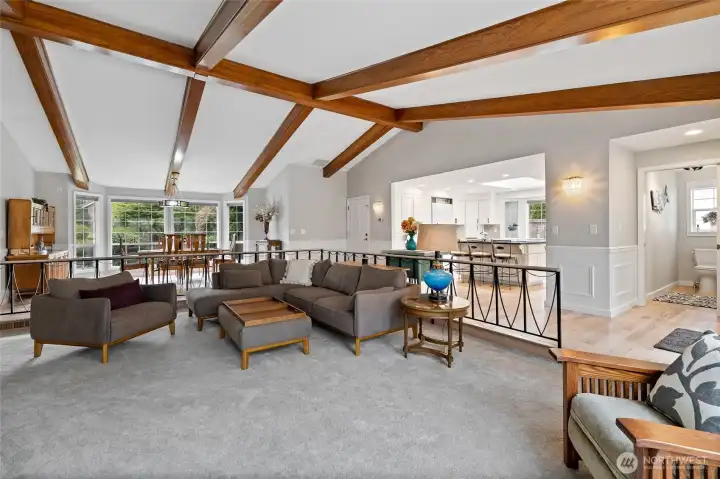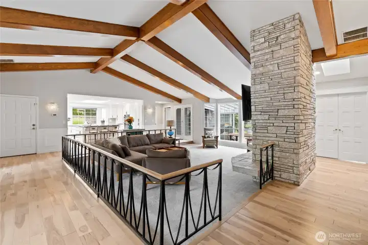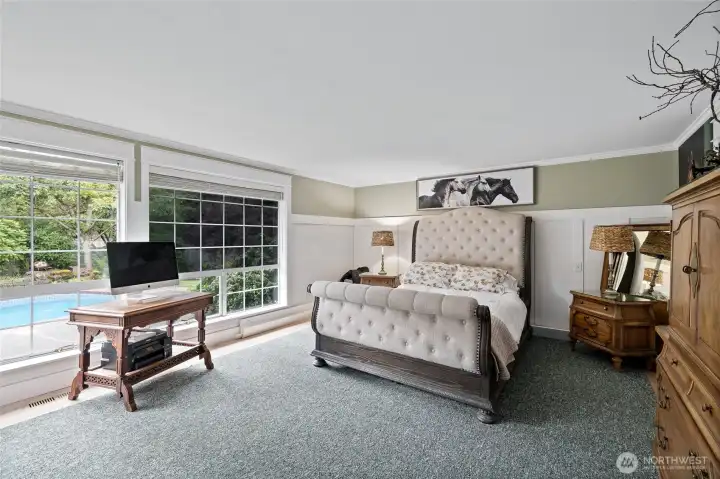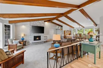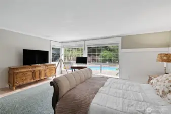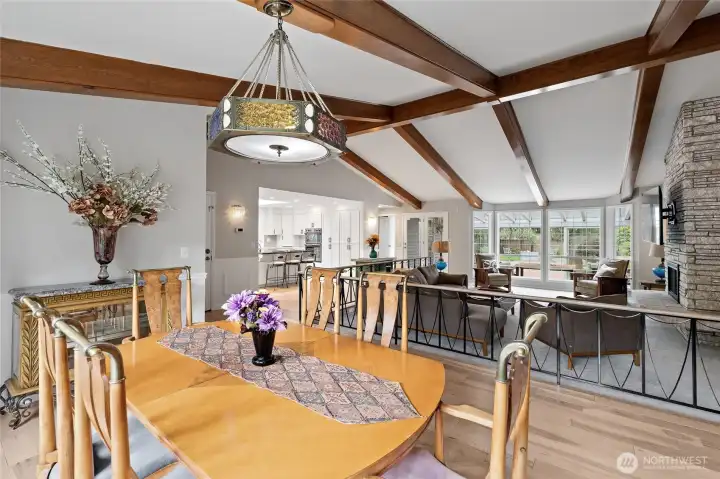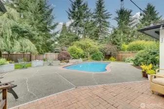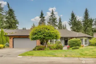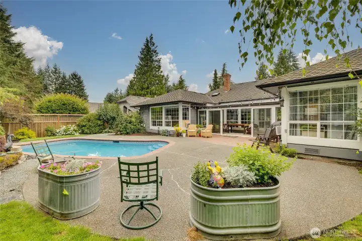 Beautifully updated craftsman style rambler with in ground pool! Great Room floor plan.Open beam vaulted ceilings & huge fireplace! Large landscaped lot, sprinkler system & fully fenced back yard. Garden areas, fruit trees, blue berry bushes & quiet areas to relax by the pool. Glass covered lanai off the pool area. All 3 bedrooms have their own ensuite bathrms and 1/2 bath off the Great Rm. Perfect home for entertaining! Custom kitchen w/large island, beautiful cabinets granite countertops & hardwood floors. Primary suite with pool access, 2 walk in closets, updated bathroom & jetted tub. Bathrooms are freshly updated w/tile floors, fixtures & more! 2 car garage, pool house outbuilding & gate to walking trails.Golfing, parks, sports & more!