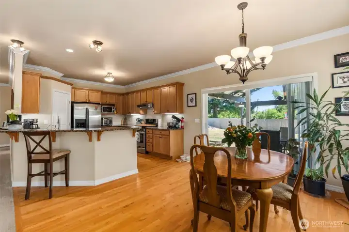 Beautiful Craftsman Rambler located in a highly sought after neighborhood. 3 Bedroom 2 Full Bath 2314 sq. ft on a fully fenced large lot! Home Boasts high vaulted ceilings with an Open Living Room & Kitchen. All New Stainless Appliances and a Stunning Fireplace surrounded by Ceramic Marble Tile with a high mantle Enjoy those cozy nights! Bright Spacious Kitchen has plenty of space w/ extra Bar seating granite counter tops, lovely cabinets and a kitchen pantry. Plenty Of Large Windows. Walk into your Primary Suite with a 5 Piece Bath and 2 Walk In Closets! Morning coffee on your own private patio. Backyard Patio Deck fully covered gazebo / metal roof , fully fenced yard perfect for entertaining! Close to JBLM & I5