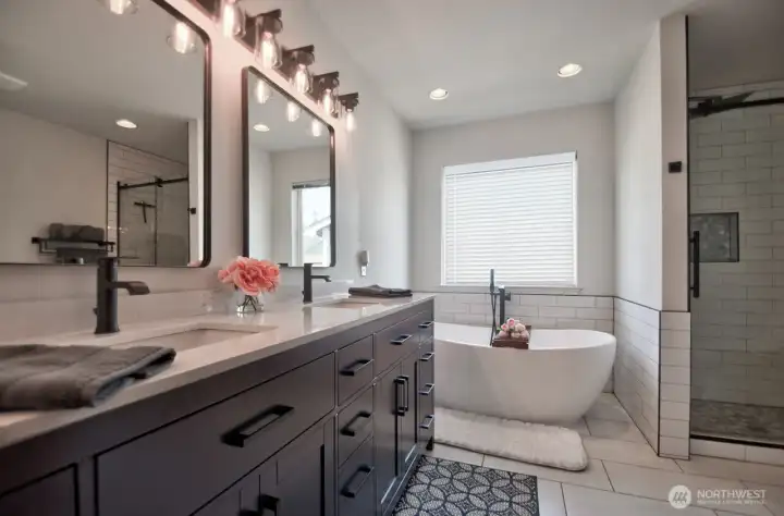 Home features inviting country porch, dramatic entry w vaulted ceilings, laminate flrs & light & bright LR w new skylights & formal DR. Great kitchen w SS appliances, breakfast bar & nook with FR & slider onto patio & huge backyard. Great kitchen/family room combo for entertaining & gas fireplace. Upstairs a larger primary suite upstairs & amazing spa like remodeled 5 piece primary bath w new cabinets, quartz countertops, tile floor, & tile backsplash, new lighting, luxurious pedestal tub, walk in tile shower and large walk in closet, have it all primary quarters. Also 3 other bedrooms upstairs one oversized with vaulted ceilings. Home has NEW ROOF, is close to shopping, schools, parks, access, freeway access, Chehalis Western Trail & JBLM