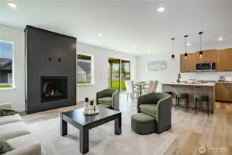 This 4-bedroom home offers a spacious, open-concept design with primary on the main, high ceilings & a cozy fireplace, creating a welcoming atmosphere. Step outside to the covered back patio, perfect for year-round enjoyment. Interior finishes include LVP flooring & quartz countertops. Make the home yours by selecting from a range of finishes and upgrades! Additional options for upgraded cabinetry, designer backsplash, premium countertops, & tile showers are also available as add-ons. Photos shown are of the same floor plan built in another community, with examples of these available upgrades (additional costs apply). SAVINGS with our Preferred Lender: .75% Lender Credit & $5,000 Seller Credit. Site built up out of the floodplain.