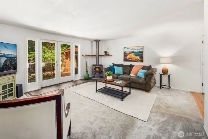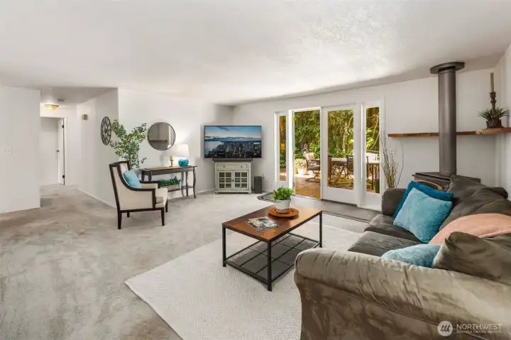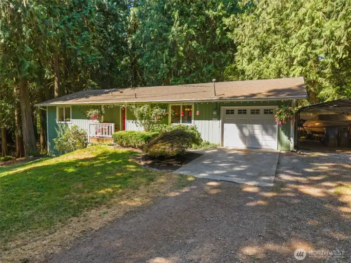 Cozy move-in ready Lake Marcel Rambler! 1,100 SF, 3 bedroom, 1.5 bath home situated on a quiet street, only blocks to the main Lake Marcel community private beach/park. Updated kitchen with quartz countertop, lots of storage, and large eating area with built-in. New paint throughout! Living room with wood stove and great access to the expansive deck, perfect for entertaining. Large level lot nestled in surrounding trees for a great sense of privacy and nature. Spacious garage, RV parking, and walk-in crawlspace for extra storage. Only 10 minutes to Carnation or Duvall for shopping, restaurants, trails, parks, and more. You will love this lake community lifestyle!