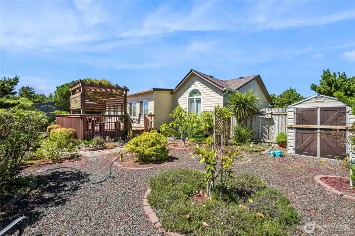 Live the ocean town lifestyle in this charming Ocean Shores home, just minutes from the beach. Thoughtfully upgraded with a Mitsubishi heat pump and mini-split system for year-round comfort—including cooling, heating, AND dehumidifying. The remodeled kitchen features designer details like embossed metal wall tiles, satin nickel hardware, and a pass-through window perfect for coastal entertaining. Step outside to a sun-soaked deck overlooking a lush walk-about garden, with two concrete-anchored sheds for extra storage. New roof (2016) and Ocean Shores Community Club membership included—your coastal escape awaits.