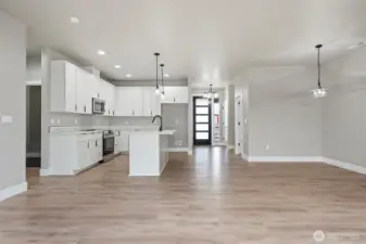 Modern Single-Level Living Enjoy open-concept living in this stunning 1,500 SF single-story home. The great room, kitchen, and dining area blend seamlessly, ideal for entertaining. Unwind in three spacious bedrooms, including a master suite with a walk-in closet and private bathroom. A large, covered patio extends your living space outdoors, while a garage offers ample storage. Modern and welcoming, this floor plan merges style with functionality. Palos Verdes is offering a $10,000 incentive exclusively when you finance with their Preferred Lender.