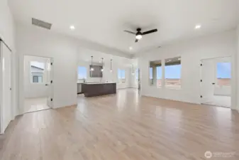 MOVE IN READY! Stylish & Functional Rambler. This thoughtfully designed 1,701 SF single-story home blends comfort with modern flair. The open-concept kitchen flows seamlessly into a light-filled great room with impressive ceilings, offering a spacious and inviting atmosphere. Three well-appointed bedrooms include a private primary suite featuring a large walk-in closet and en-suite bath. A covered front entry adds charm and shelter, while the attached two-car garage provides convenient parking and extra storage.Take advantage of a $10,000 incentive plus a 1% seller credit when you finance with Palos Verdes’ Preferred Lender.