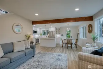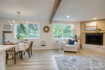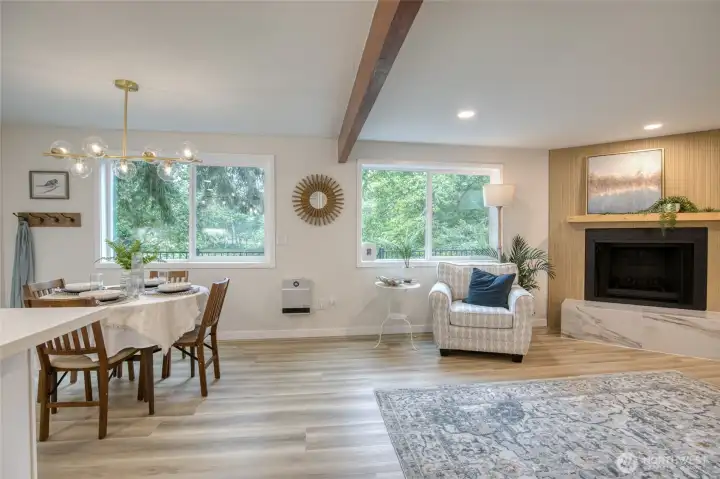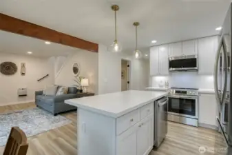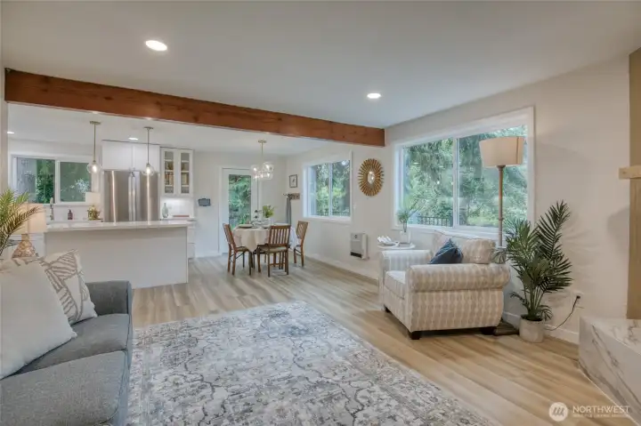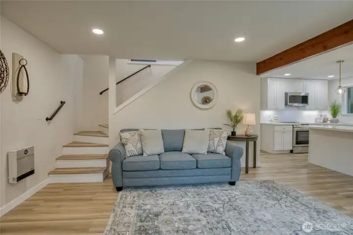 Updated A-frame retreat on a peaceful waterfront in the heart of Ocean Shores. This 2 bed, 1.75 bath home features modern finishes, vaulted ceilings, and an open, airy layout. The main floor includes a bedroom, full bath, kitchen, dining, and living area. Upstairs offers a loft and primary suite with ¾ bath. Enjoy the sound of ocean waves from the backyard, walk to the golf course, or relax at Emerson Park just across the street. Minutes from the beach and downtown. Part of the Ocean Shores Community Club—perfect for a coastal escape or full-time living.