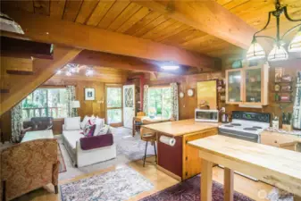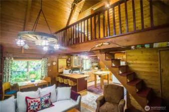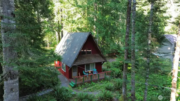 Skip the lines! Just 2 blocks and a right turn, and you arrive at the West gate to Mt. Rainier National Park from a traditional NW cabin. Surrounded by cedar and fir trees on an XL forested lot, this dream vacation home features a 20-foot pitched ceiling with natural wood beams and walls, brick fireplace, and full kitchen complete with a washer-dryer. The sleeping loft easily sleeps 4 and opens to a small upstairs deck. Enjoy the large front deck while you plan your experience at the nearby beautiful Nisqually River at daybreak and sunset!