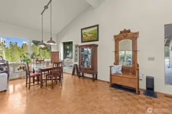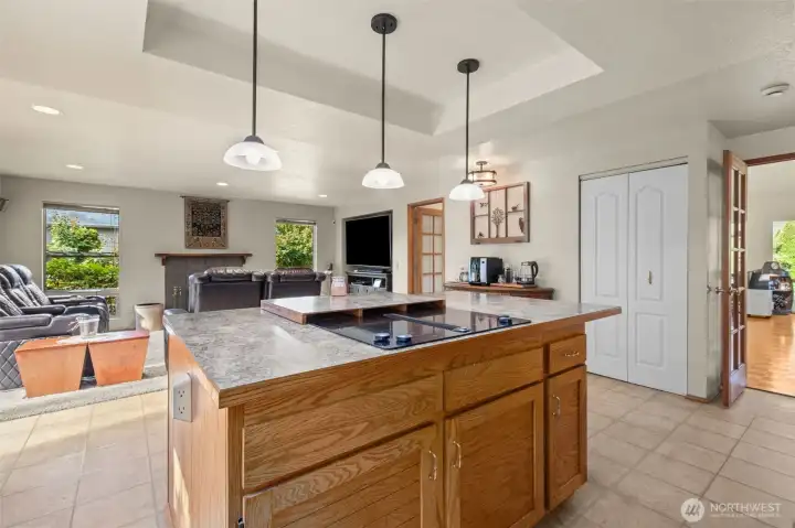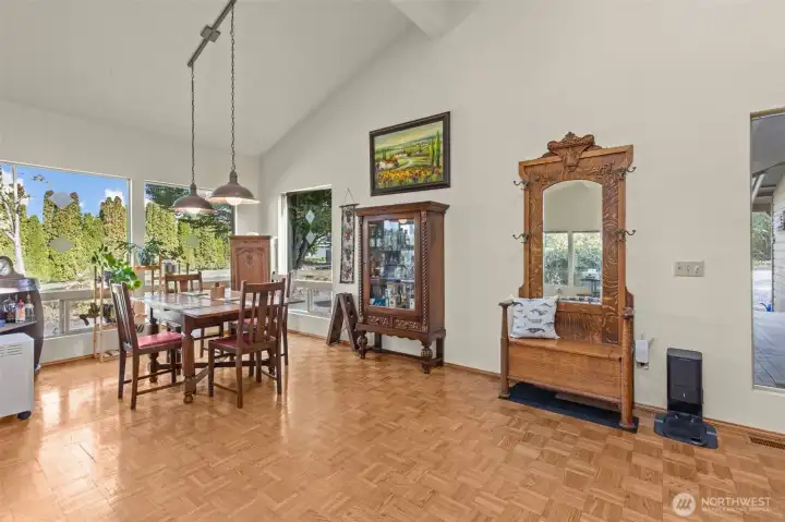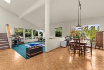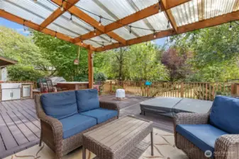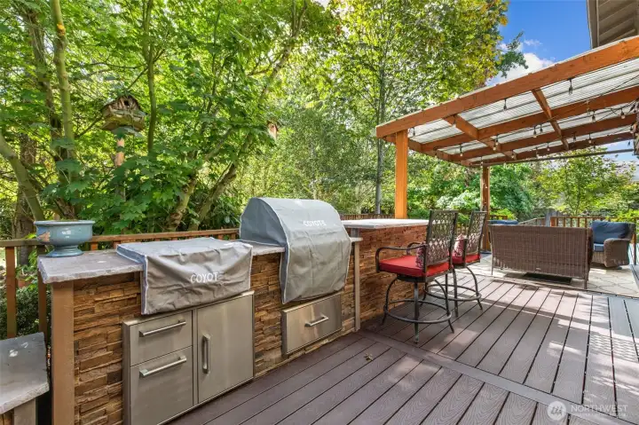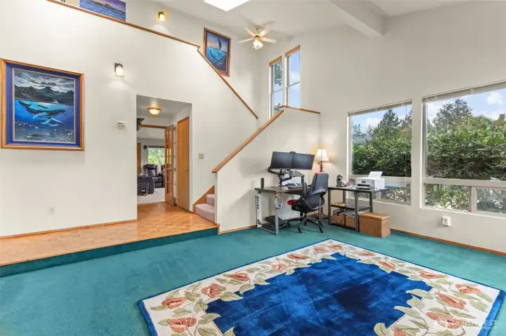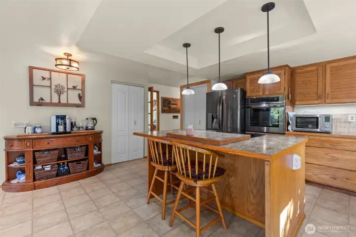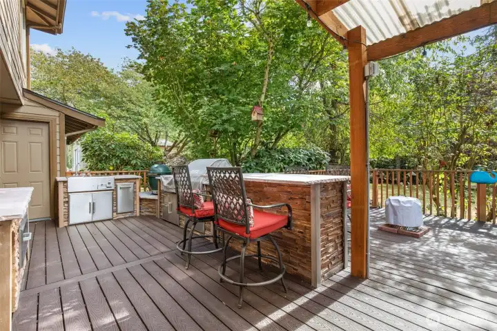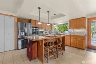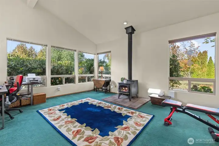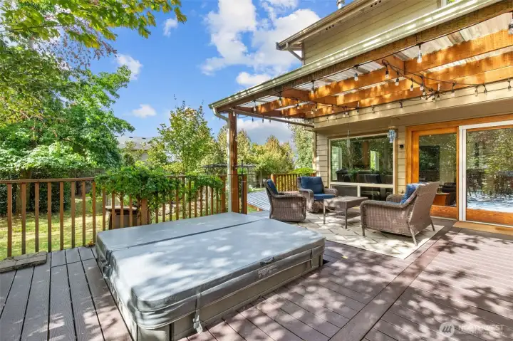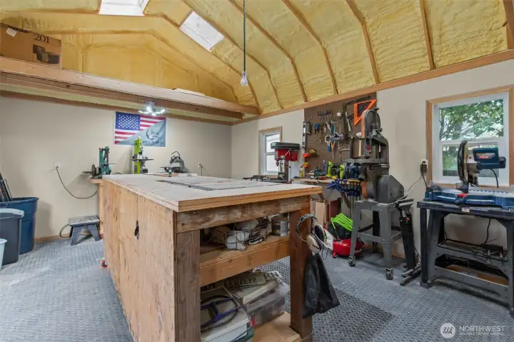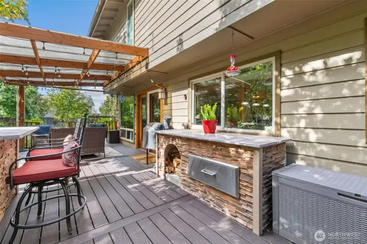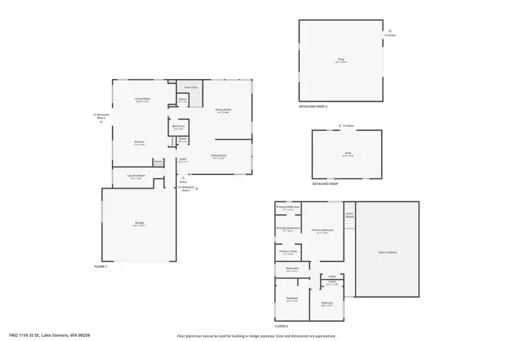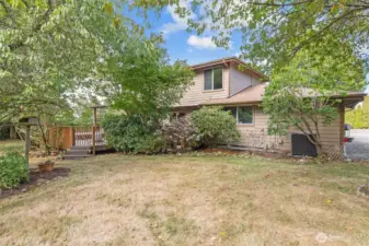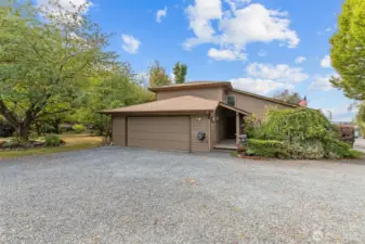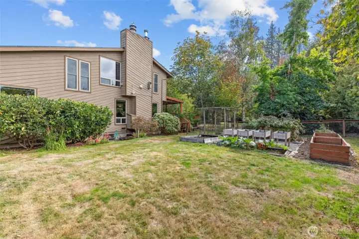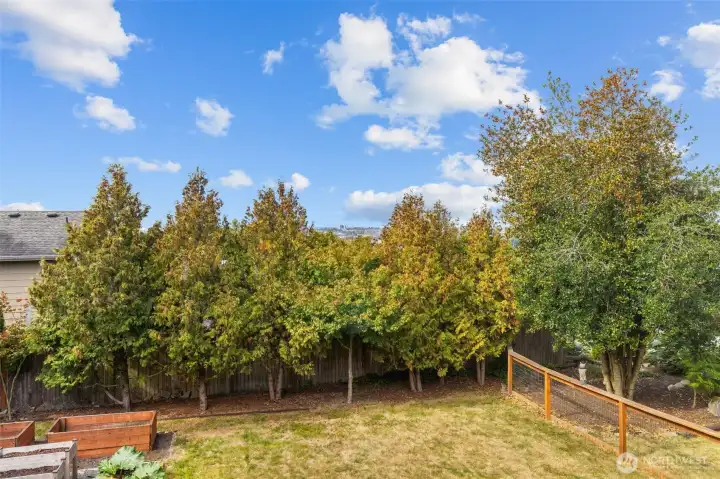 Welcome to this hidden Lake Stevens Oasis! Stunning 3 bed 2.5 bath well-maintained 2-story home sits on a level lot with mature fruit/apple trees, raised garden space, 2 lrge shops, lush landscaping. 400 amp. NEW ROOF (9/2025) Inside boost open kitchen-family rm combo and living room with soaring skylight ceilings wood burning fireplace, Large deck w/hot tub, built-in cooking station, attched 2-car garage and HV EV charging avail. RV parking w/power hookup and stunning views of mountains, territorial & city. Dbl-pane storm windows allow for natural lighting. Upstairs host the primary en-suite bedroom boasts another fireplace w/walk-in closet, new tiling and fresh fixtures. Including 2 full size guest bedrms w/mrphy bed w/ full-guest bathrm.