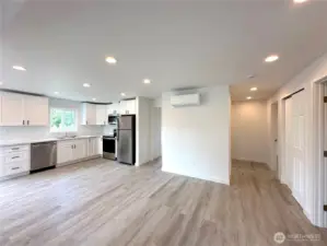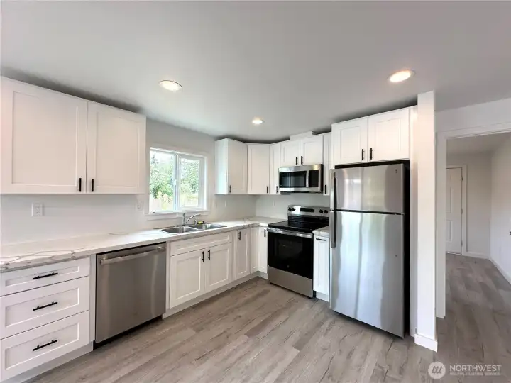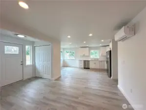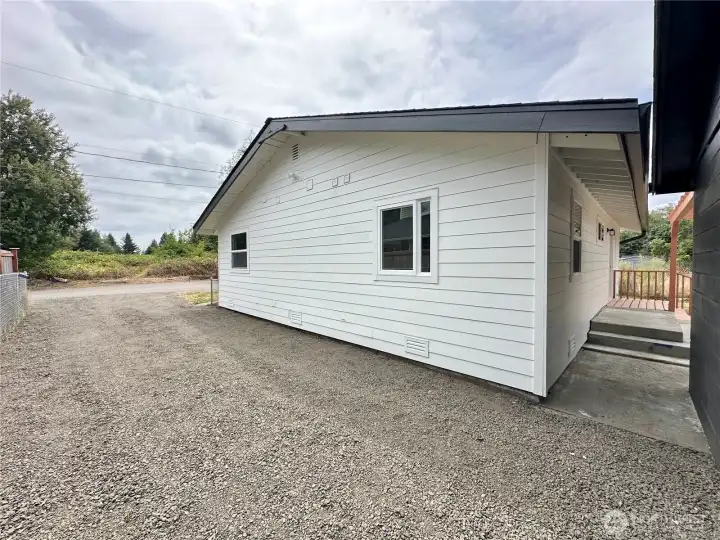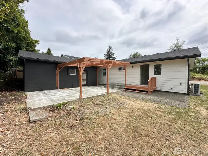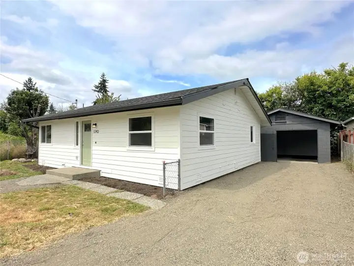 Beautifully permitted remodel to the studs, this 3-bedroom, 2-bath single-level open floor plan home is move-in ready and full of charm. With all new windows and all new kitchen cabinets, appliances, and white quartz countertops, A/C in each room, and water heater, do not miss this hidden gem on private road. Enjoy a large private backyard with a wood pergola and large concrete patio, perfect for outdoor parties. The 432 SF detached garage offers great storage or dream workshop. One bedroom features a separate entrance—ideal for rental income, guests, or office. Located in city center just a short walk to Walmart Supercenter and nearby retail, with an easy commute to neighboring towns. A perfect blend of quality, location, and flexibility!