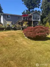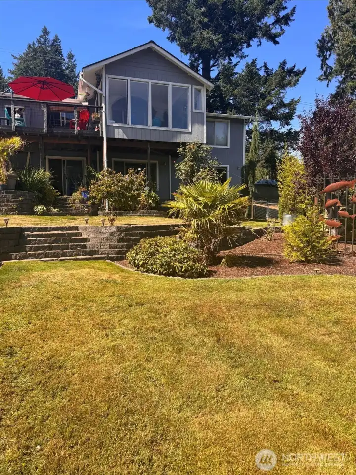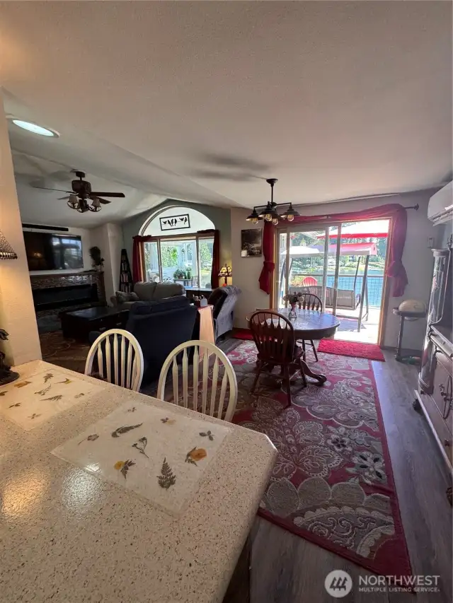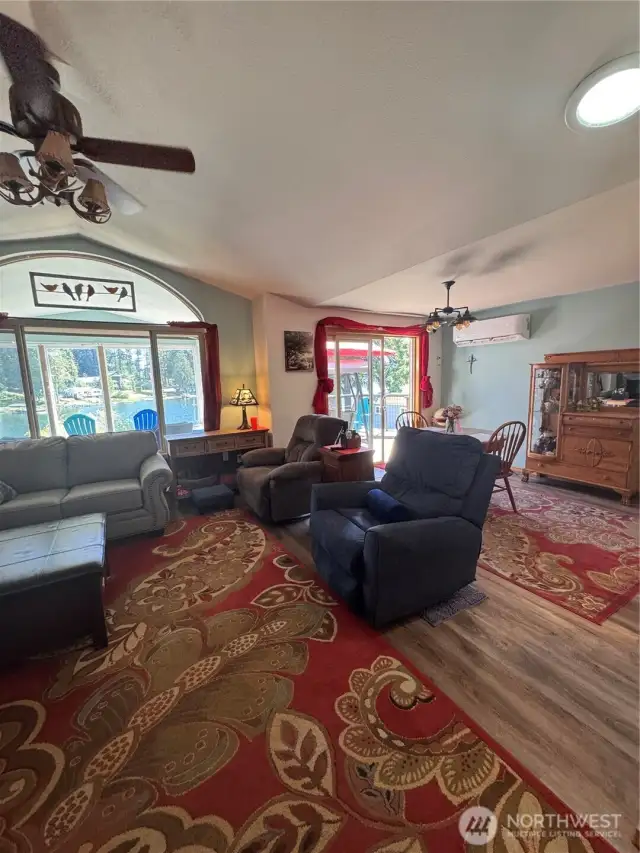 Discover 125 feet of no-bank waterfront on the serene, quiet end of Lake Shoecraft—perfect for boating, swimming, and relaxing. Moor your boat at the private dock, enjoy kayaking, paddleboarding, and waterskiing right from your backyard. Inside, the home features an open-concept floor plan ideal for entertaining, with a spacious deck and a finished sunroom that brings the outdoors in. You'll find primary bedrooms and split ac units on both levels, offering comfortable and flexible living arrangements. The daylight basement boasts brand-new flooring, doors, and trim, along with a full bathroom, a bedroom with lake views, and a large family room with a dedicated office/den space.