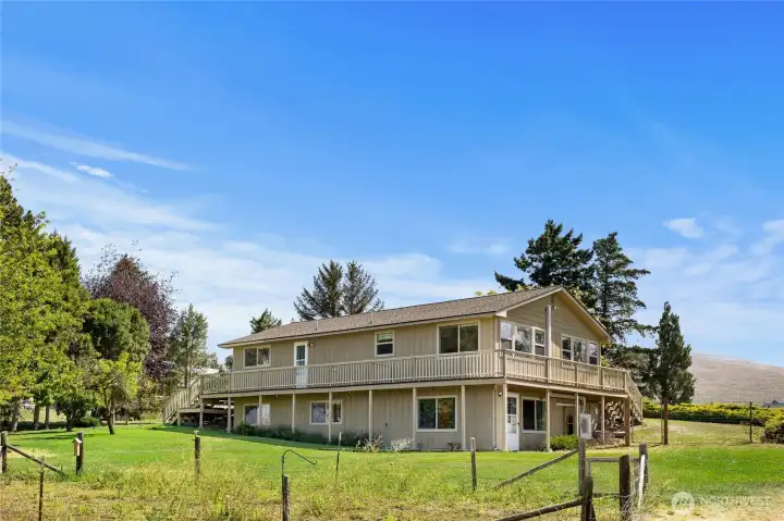 Pure country & amazing valley & Mt Rainier views! On over 7 acres, this home lives like a rambler, but has a full daylight basement for extra living space. Newer hvac system keeps it comfy along w/ a gas fireplace on each floor. Bright rooms have large windows that frame expansive views. The primary on the main has deck access & across from bath. Useful utility room w/ sink is perfect for country life. Downstairs is a huge rec room, 2 guest bedrooms, storage room, & full bath. Step out on the wrap around deck, & gaze over a fully fenced backyard w/ mature trees/landscape. The spacious shop is a woodworkers paradise. Your animals will have the barn & fenced paddocks. Fruit trees, garden space, & alfalfa fields. This property has it all!
