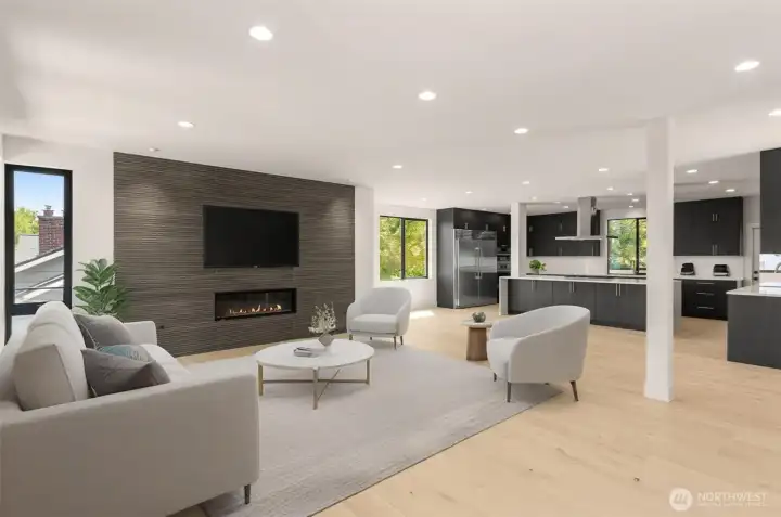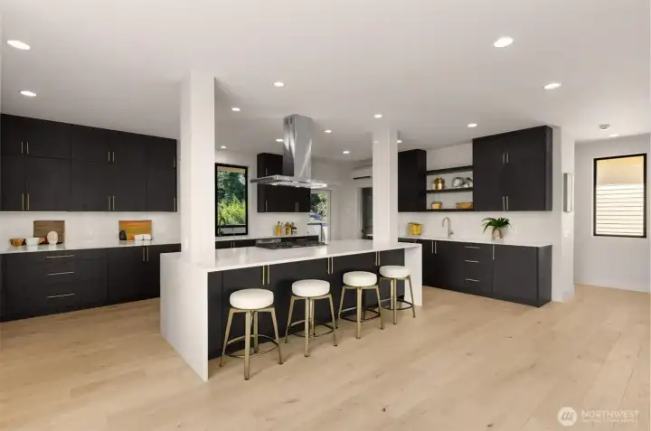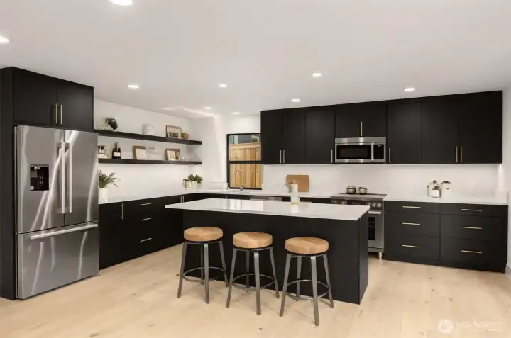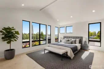 Spectacular new home with territorial and lake views. A fabulous ADU with fully equiped custom kitchen, bedroom and tiled full bath. The living level features floor to ceiling glass, a Chefs kitchen with Bosche SS appls and Electrolux Custom Fridge, a wine bar, center island with Quartz waterfall counter, a walk in pantry with adjacent covered deck and fenced back yard. 4 bedrooms upstairs with 2 more full tiled baths with heated floors and a primary suite with views, tiled 5 piece bath with soaker tub and walk in closet. 2 laudry rooms, beautiful light hardwood floors throughout and of coarse a very sought after neighborhood close to U village and restaurants. The garage is equiped with EV and more parking in driveway.